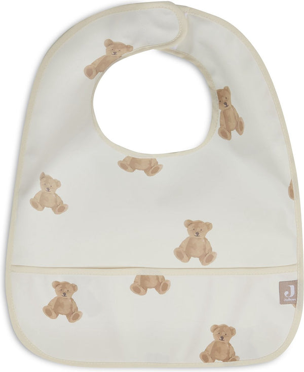Le bavoir imperméable se ferme à l'aide d'une bande velcro à l'arrière. Celui-ci reste en place, de sorte que votre bébé ne peut pas l'enlever facilement lui-même. Le bavoir s'enlève à l'aide d'un chiffon humide. Beaucoup de moments de désordre dans une journée ? Achetez alors un pack duo. Vous aurez ainsi deux bavoirs identiques en un seul achat.