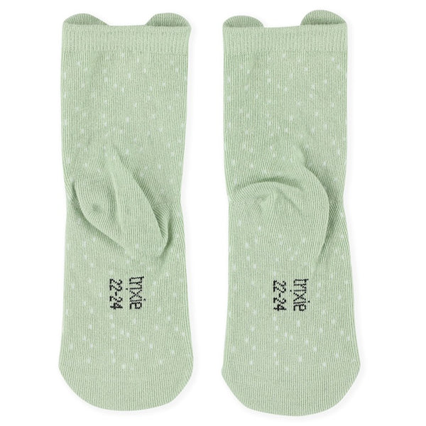 Des pieds heureux avec nos jolies chaussettes d'animaux ! Tous les petits aimeront sortir avec ces jolies chaussettes d'animaux, décorées de points ludiques et d'oreilles battantes ! Les chaussettes sont fabriquées en coton biologique de haute qualité combiné à du nylon et de l'élasthanne. Ils sont très doux, confortables et s'ajustent parfaitement. Les bas sont disponibles de la taille 19/21 à la taille 25/27. Vous pouvez choisir parmi de nombreux animaux différents.