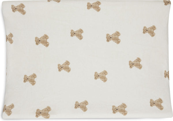 Une jolie housse en jersey avec un imprimé ourson qui s'adapte exactement au matelas à langer est le basique le plus pratique de l'habillement de bébé. Le tissu est doux et extensible. L'élastique sur les bords permet à la housse de rester bien en place autour du coussin. Avec cet imprimé nounours mignon, la housse a également un aspect cool et joli. Le matelas à langer est assez froid sans la housse et le plastique n'est pas très confortable. Une serviette non fixée glisse et ne couvre pas les bords. Une serviette hydrophile standard est trop petite et trop fine pour couvrir correctement le matelas à langer. Cette housse pour matelas à langer reste ferme comme un drap-housse, elle se lave en un rien de temps et votre bébé (et vous) vous sentez à l'aise. Déjà top, hein ? Conseil : ayez plusieurs housses à portée de main. Les housses de matelas à langer sont très malmenées. Quelque chose comme "oups... le lait coule sur mes joues joliment sur la housse" ou "ah... c'est sympa de faire pipi maintenant que ma couche est enlevée". On change le matelas à langer plusieurs fois par jour avec une housse de coussin propre.