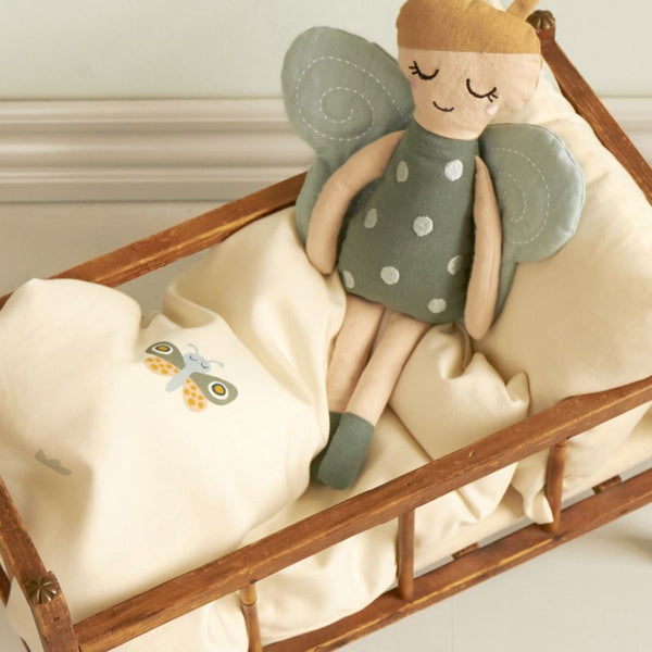 La literie de poupée Roommate convient à un lit de poupée et a des dimensions de 32 x 40 cm. La literie présente une belle impression avec un tigre ou un bébé papillon. De plus, la literie de la colocation est fabriquée en coton 100% biologique et est assortie à la véritable literie de la colocation. Ainsi, tout le monde dort dans le même design. Il n'y a rien de plus amusant, n'est-ce pas ?