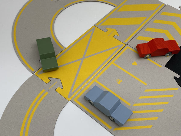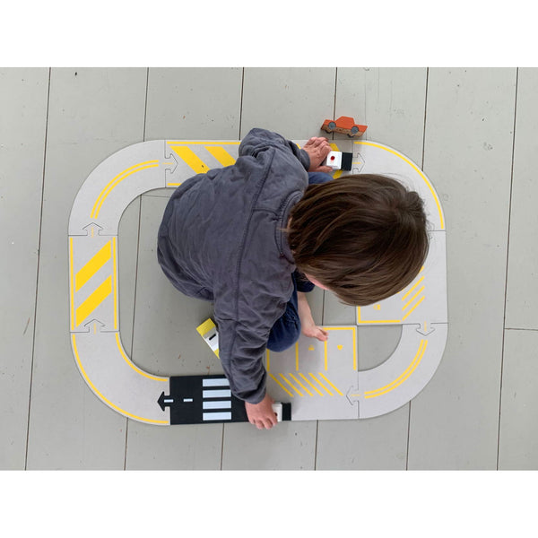 Les pièces de la route en carton recyclé sont spécialement conçues pour être utilisées à la maison. L'avantage est que votre enfant peut écrire, dessiner ou gribouiller dessus.