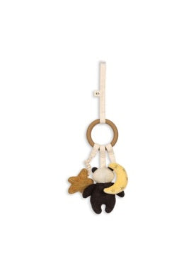 Cet adorable anneau d'activité avec des oursons tout doux est conçu pour stimuler les sens de votre bébé. Le jouet est fabriqué à partir d'un mélange de coton et de laine biologiques et est attaché à un anneau en silicone, idéal pour les petits qui veulent s'amuser avec.