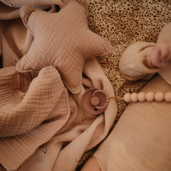 L'attache-tétine en silicone Mushie offre durabilité, fonctionnalité et simplicité aux familles qui se déplacent.