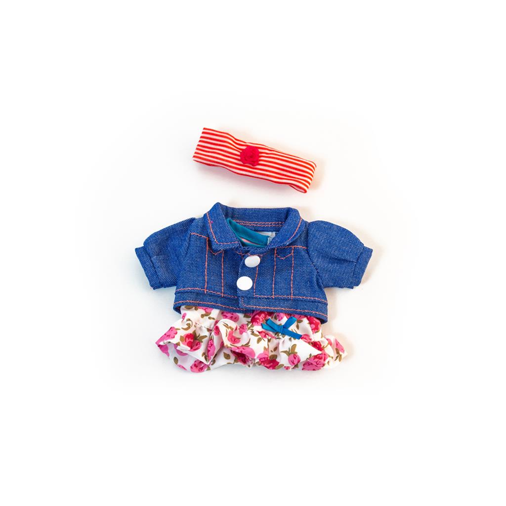 Diese schöne Puppenkleidung ist für Puppen von 21 cm geeignet. Dieses Set enthält einen Rock, eine Jacke und ein Haarband. Dieses Kleidungsset bietet Stunden Spaß, mit dem das Baby schön gekleidet werden kann.