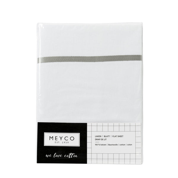 Ein wunderbar weiches Blatt 100% Baumwolle. Durch die Verwendung von 100% Baumwolle ist das Blatt gut atmungsaktiv und sicher, aber besonders bequem zu schlafen. Das weiße Blatt hat eine farbige Rohrleitung, die perfekt zu den Meyco -Decken in verschiedenen Designs passt.
