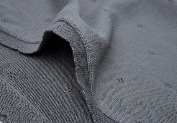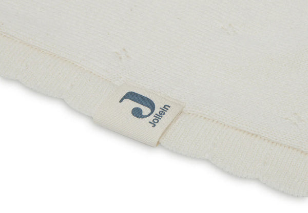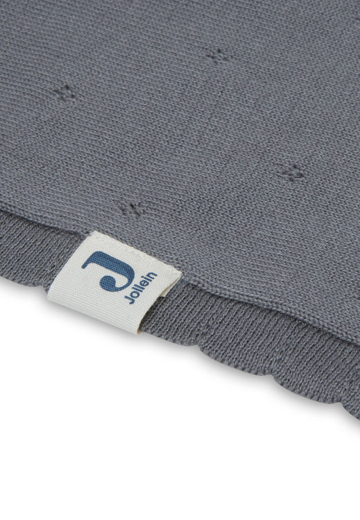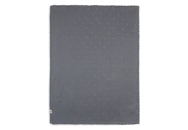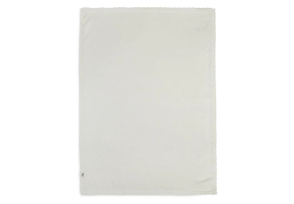 Erhältlich in Elfenbein, Sturmgrau und Keks in 75 x 100 cm und 100x150 cm. Diese feine Pointelle -Decke ist GOTS zertifiziert, dies ist eine international anerkannte Norm für organische Baumwolle.