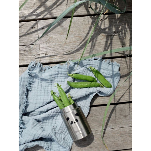 Die schöne und praktische doppelte Stahl -Thermosbox -Nadja für die Aufbewahrung (heiße) Snacks für Ihre Kinder aus der dänischen Marke Liewood.