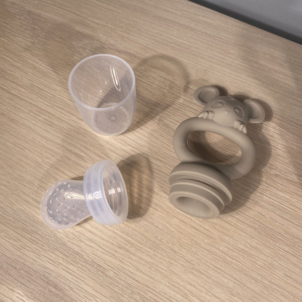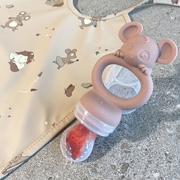 Mit unseren Fruchtfutterleitungen können kleine Kinder lernen, sich selbst zu essen, und das Risiko eines Erstickens wird minimiert, während das Baby lernt, wie man feste Nahrung, insbesondere Obst, schluckt. Der ergonomische Griff mit süßem Mausmuster ist für kleine Hände leicht zu erfassen. Die Voerfop -Zitze hat kleine Löcher, so dass nur kleine Nahrungsmittelpartikel durchdringen können, damit sich das Baby selbst ernähren kann. Kommt mit einer Schutzkappe, die den Silikonpunkt sauber und hygienisch hält.
