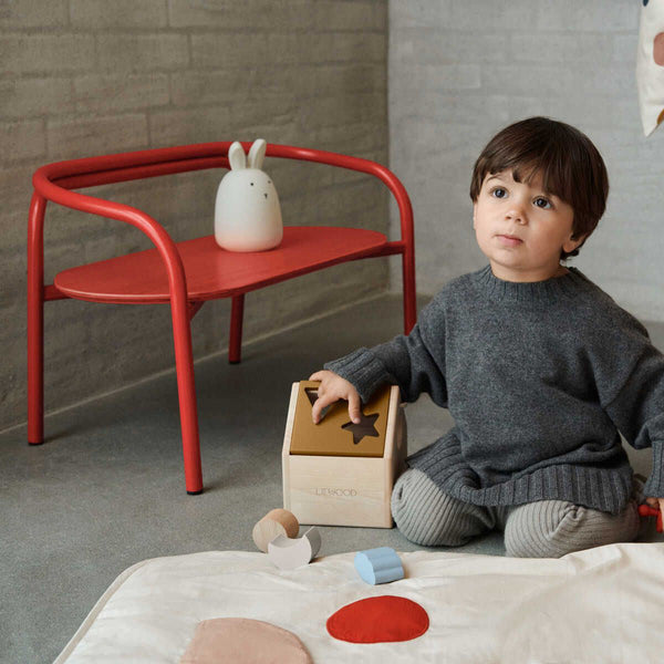 Liewood Kinderbank Axel in Apple Red ist ein stilvolles und praktisches Möbelstück für den Kindergarten. Ideal, um Ihr Kind eine gemütliche Lese- oder Spielecke zu erstellen. Die Kinderbank besteht aus pulverbezogenem Aluminium mit einem Buchenholz. Ein Treffen zwischen Soft und Firma lebt in der Möbelreihe von Liewood, Basierend auf ihrem legendären Baxter -Stuhl.