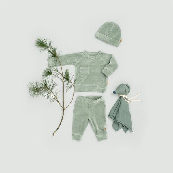 Weicher Pullover aus Fresk aus Velours. Die Pullover können mit einer Uni -Hose aus Fresk kombiniert werden.