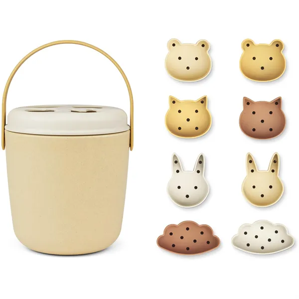 Liewood Jorn Beach Puzzle ist ein schöner Eimer mit einem Formdeckel und Formen in Form eines Tieres. Als Puzzlungsbox für den Strand, aber auch drinnen verwendet werden. Die Formen sind mit Löchern ausgestattet, damit das Wasser durch das Wasser gehen kann.