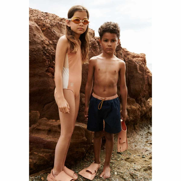 Der Liewood Titas Schwimmbrillen in verspielten Farbblockkombinationen ist perfekt für Wasserspaß und Schwimmabenteuer. Mit seiner angepassten Band und dem angepassten Logo bietet der Komfort und der Stil für jedes Kind. Dank des Silikonrahmens der Spektakelobjektive und des verstellbaren Reifens ist die Tauchbrille angenehm zu tragen.