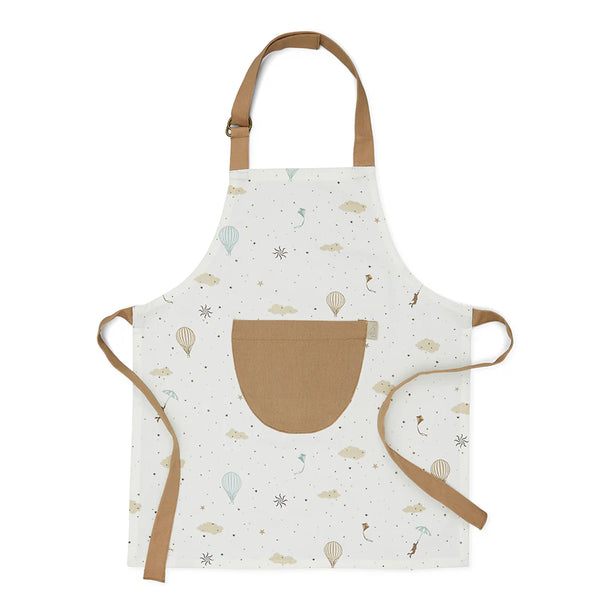 Nette kleine Schürze, die die Kinder beim Kochen oder beim Spielen tragen können. Die Schürze hat verstellbare Gurte um den Hals und eine Tasche vorne. Die Schürze hat eine praktische Wasser- und Schmutzabnahmebeschichtung.