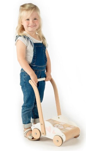 1, 2, 3... LOS GEHT'S! Mit diesem schönen Klötzchenwagen gehen die Kleinen stilvoll aus und nehmen ihre Lieblingsklötze überall hin mit. Dieser Holzklötzchenwagen ist aus nachhaltigem FSC-zertifiziertem Buchenholz gefertigt und mit kinderfreundlicher Farbe auf Wasserbasis in natürlichen Holztönen, kombiniert mit sanften blauen und rosa Farben, lackiert.