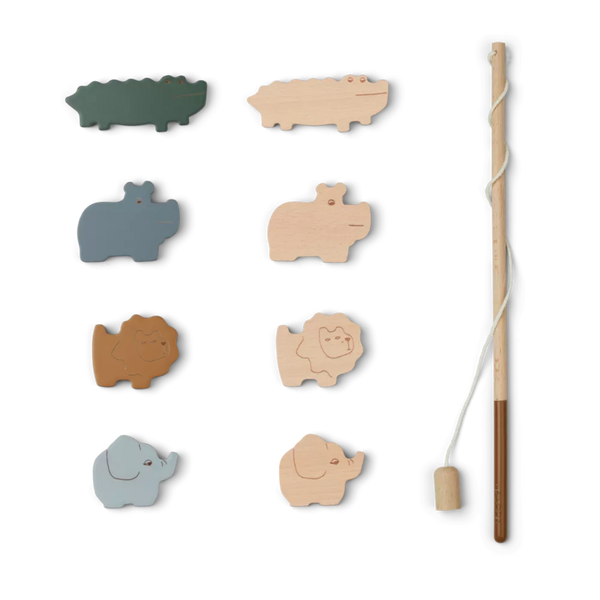 Schönes Spielset für Ihr Kind, um die schönsten Figuren von zu fangen Liewood. Fischspiel daß die Hand-Auge-Koordination und die Feinmotorik Ihres Kindes. Fangen Sie die Figuren mit dem Sebastian -Fischereispiel und trainieren Sie ihre Namen.