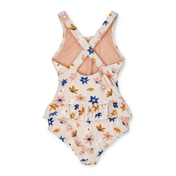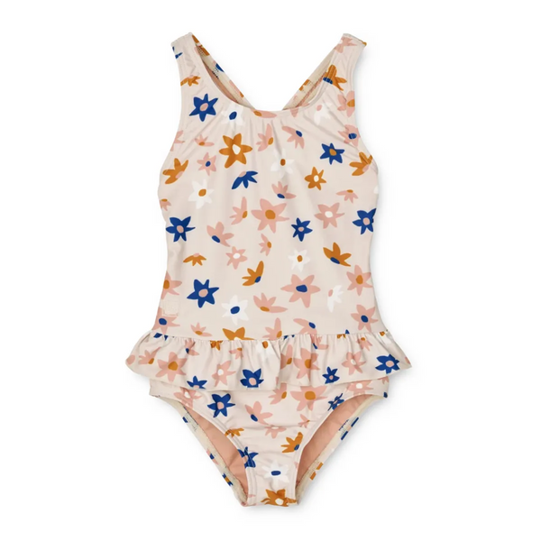 Girls' print swimsuit made of recycled polyester. Let your little one