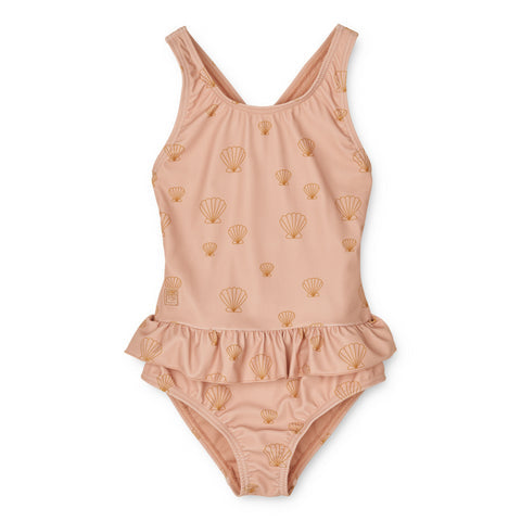 jump in the pool in the Amara ruffled swimsuit made from recycled polyester.