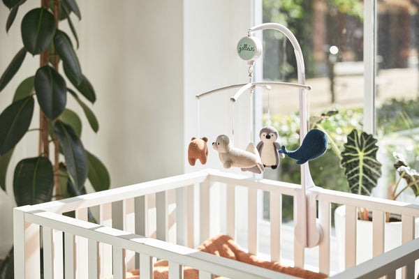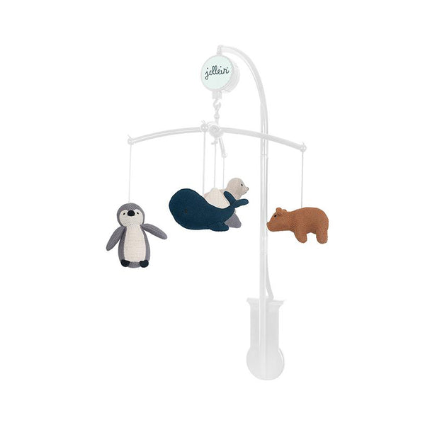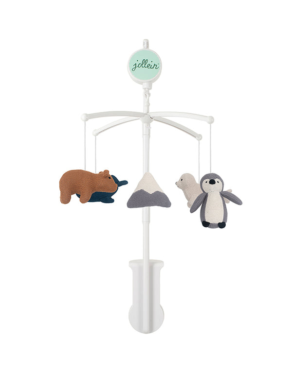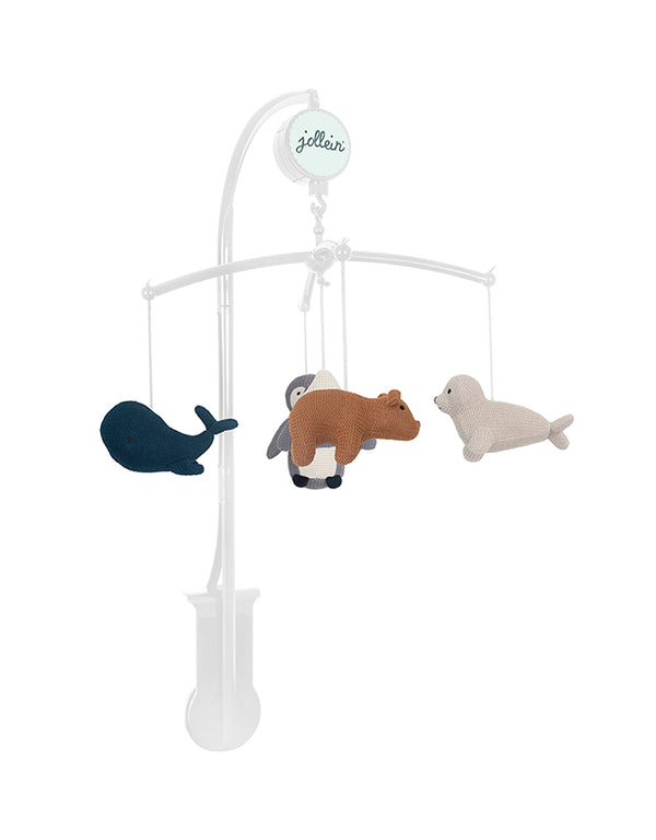 Beautiful music pendant Polar from Jollein. The music pendant consists of knitted Polar animals in various soft colors. The individual animals and figures on the music mobile are 11 cm. The fabric is made of cotton and the filling is polyester fiberfill.