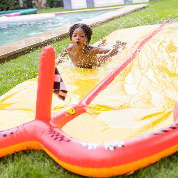 Race right into summer with the Inflatable Water Slide from Swim Essentials! Thanks to the double lanes and its unique design you can enjoy racing and competition. You'll step into the shoes of Max Verstappen for a while! The belly slide is 5.5 meters long and can be connected with a garden hose. Suitable for 2 people at the same time. It is recommended to use the water slide on a soft surface to avoid painful landings.Get the Swim Essentials Water Slide Racing now at our online wholesaler, The Essentials!