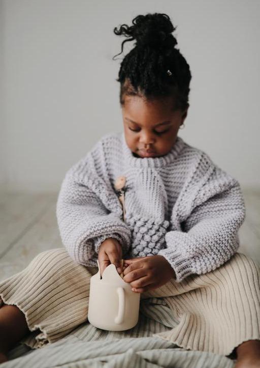 The flexible opening at the top of the silicone cup keeps the fruit, sweets or other snacks in the cup in case it falls over. The bottom of the snack cup has a non-slip rim. The Mushie silicone snack cup measures 9 x 8.5 centimeters excluding the ears that allow your little one to grasp the snack cup.