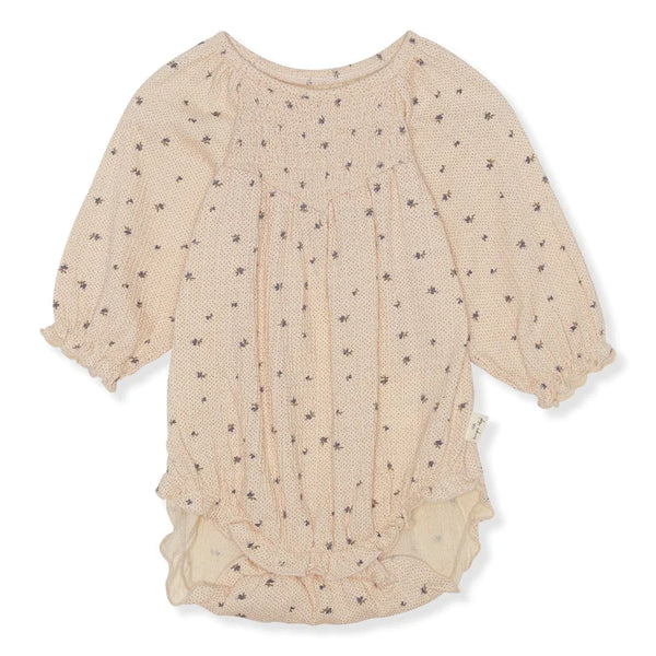 A beautiful romper from Konges Slojd, made of soft cotton. The short-sleeved romper has an elastic neckline, snaps at the crotch and ruffles on the sleeves and at the bottom of the romper.