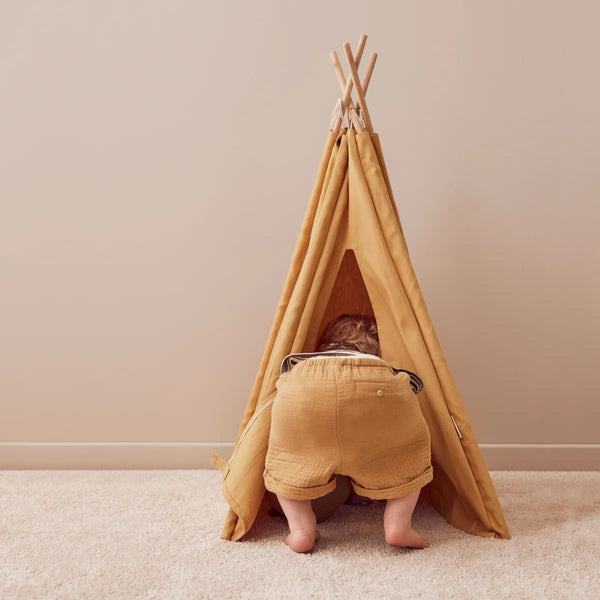 Give your dolls and stuffed animals their own place with this adorable mini tipi tent! Perfect for adventurous playtime in your tipi tent or anywhere you go, this little tipi tent is ideal for taking with you. Easy to set up and take down, so your stuffed animals and dolls always have their own home for any adventure.