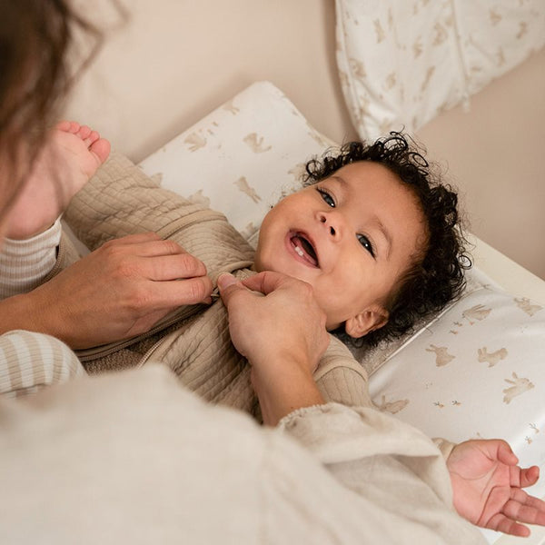 The Little Dutch Little Farm changing mat cover keeps your child soft and comfortable on the wash pad. In addition, the cover protects the changing mat from dirt and moisture. The cover feels soft to the touch and the design features a pattern that provides a stylish look. The laundry cushion cover fits around almost any standard laundry cushion and is made of high quality material. Furthermore, the cover can easily be washed out in the washing machine when it gets dirty.