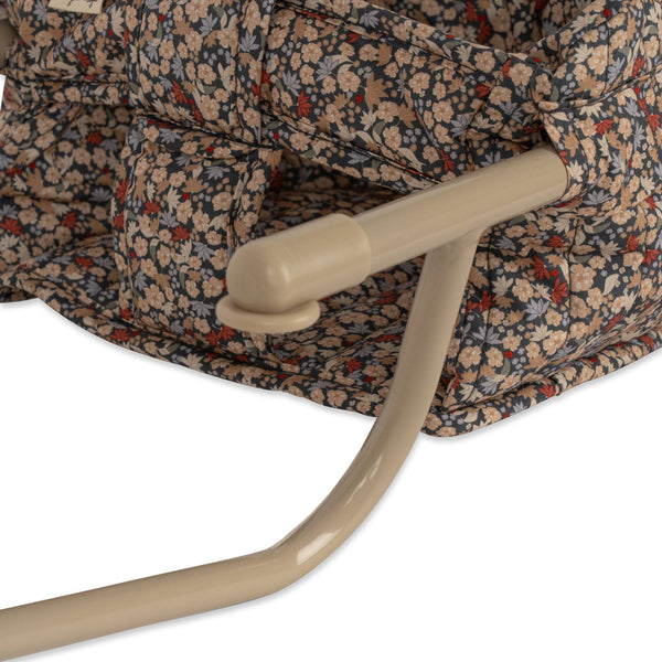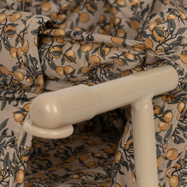 Dolls table hanging chair made of 100 percent quilted organic cotton with an iron frame. Easy to attach to the table. Designed with scalloped edge details.