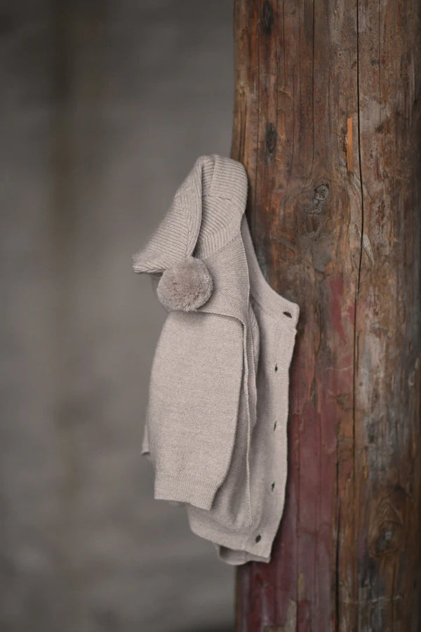 This soft baby hat is made of 100% high quality pure merino wool. Bonnet are perfect for cold times and cover the whole neck. There are many cute details and a small pompom on the top. The product can be washed on a soft wool program.