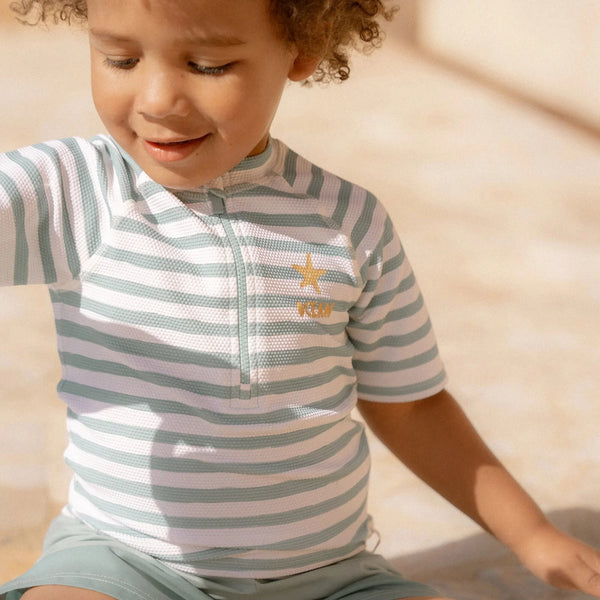 A cute and functional swim shirt that effortlessly combines style and comfort for any little beach lover.