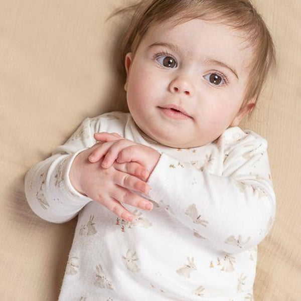 Your very first summer! With this adorable romper, your baby will be all set. The bodysuit is made of soft organic cotton and has a cute bunny print. Thanks to the long sleeves, your little one will not get cold easily. The bodysuit can be put on and taken off through the flap closure. On the bodysuit are labels with the Little Dutch logo and carrot icon. Available in sizes 56, 62, 68 and 74.