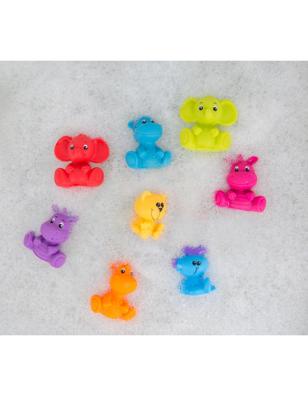A box full of friends for bath time from Playgro. The 8 friends from the jungleijn perfect for imaginary water play and bath time fun. They are completely sealed to prevent mold and completely safe for your baby to chew on (BPA-free). Packaged in a beautiful gift box. Guaranteed lots of bath time fun! Suitable for children 6 months and older.