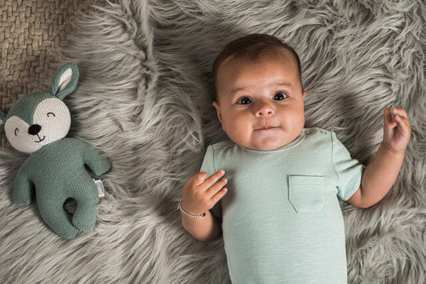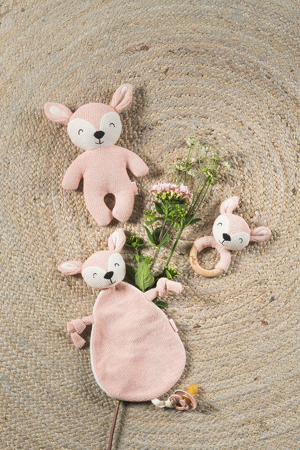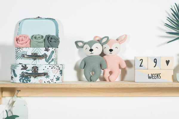 Cuddling is something babies want to do all day long. It gives a secure and familiar feeling. This happy little deer is made of soft, knitted fabric and is also a perfect maternity gift.