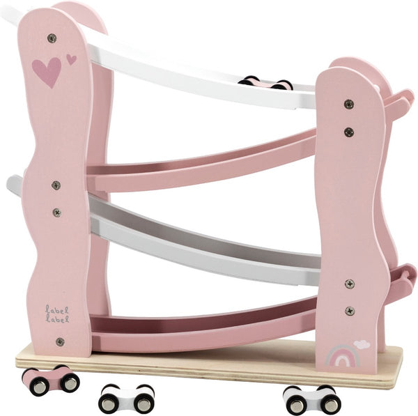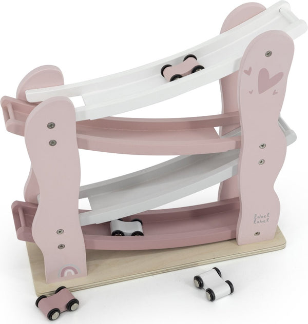 Let your little one enjoy hours of playtime fun with this sturdy wooden car track from Label Label! Put the four included cars on top and watch them race down. Who will come down first? This beautiful car track, in stylish shades of blue, white and gray, is not only fun to play with, but also a beautiful addition to the nursery.