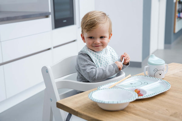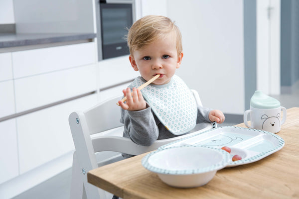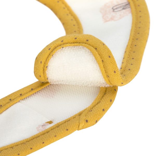 The bibs have an adjustable closure that grows with your baby. They are suitable for children from 12 to 18 months. Thanks to the convenient Velcro closure, they are easy to put on and stay securely in place.