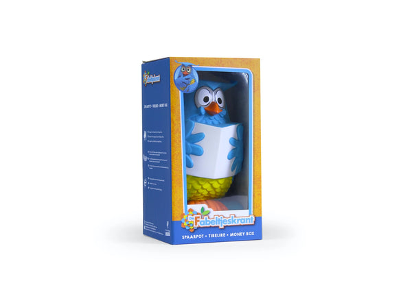 Now meet Mister Owl from The Fabeltjeskrant in the form of a charming money box. Mr. Owl, the famous narrator from The Fabeltjeskrant, is known for his somewhat long-winded and forgettable character, often interrupting his sentences with a distinctive "Eh" and ending them with a reassuring "Yes"! His iconic sayings such as "Bye, dear peepers" and "Eyes closed and beaks closed" are beloved by many.