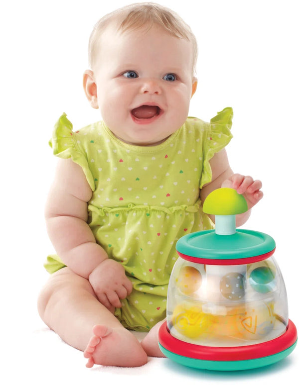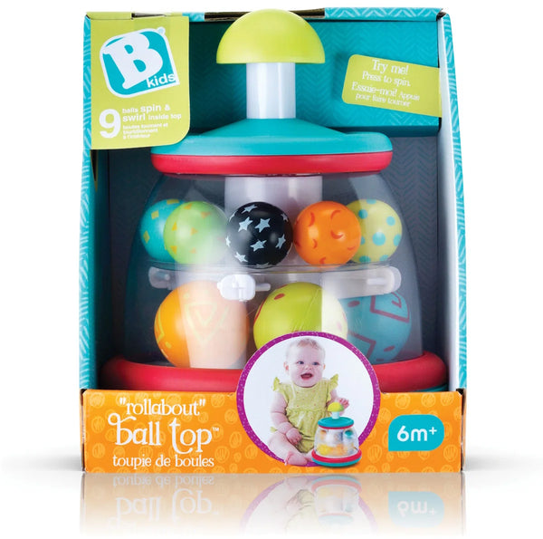 Give your child endless playtime fun with this cheerful and colorful Rollabout toy spinning top from B-Kids! This fun spinning top is specially designed to excite curious little hands and eyes. Press the large button at the top, and watch as the layers of colorful balls begin to spin! The different colors and patterns of the balls make the spinning even more fun and immediately catch your little one's attention.