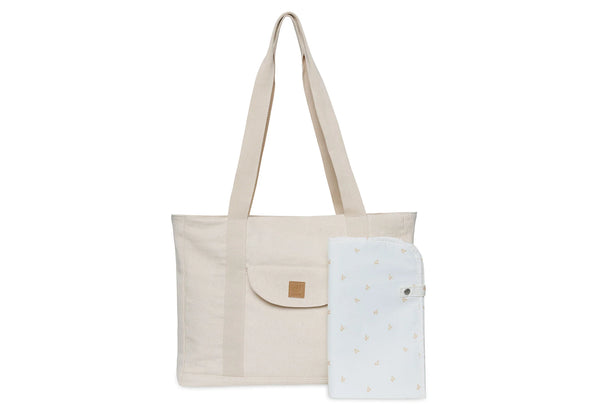 Go natural, go Twill. The latest trend of linen-look twill is now also reflected in this must-have mom bag. The handy bag has all the necessary compartments to store all the stuff for you and your mini easily and clearly. The bag also has a long handle so you can easily hang it over the stroller pole. Very handy! The linen look is nice and natural so it matches all your outfits.