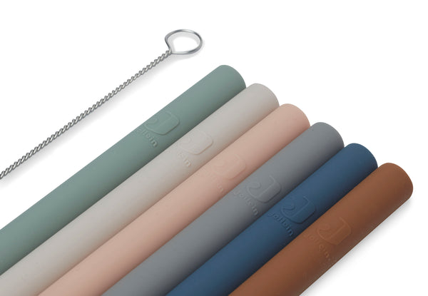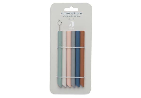 The straws are packed per 6 pieces in 6 different colors from the silicone theme. The straws fit perfectly into the silicone drinking cup from Jollein.