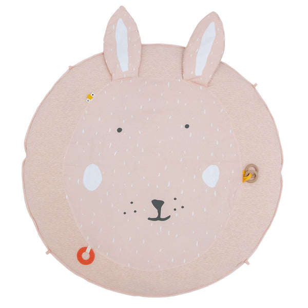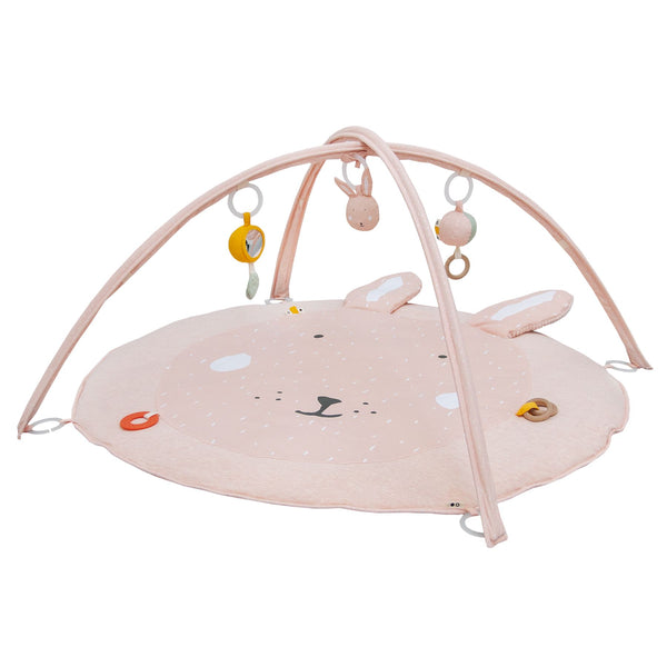 De speelmat met twee bogen en drie leuke speeltjes bezorgen elke kleine spruit urenlang speelplezier. Met het spiegeltje, de bijtring, houten ringen, rammelaar, knisperpapier, leuke labels en flapperende oren met verschillende zacht texturen, prikkelt deze speelmat alle zintuigen.