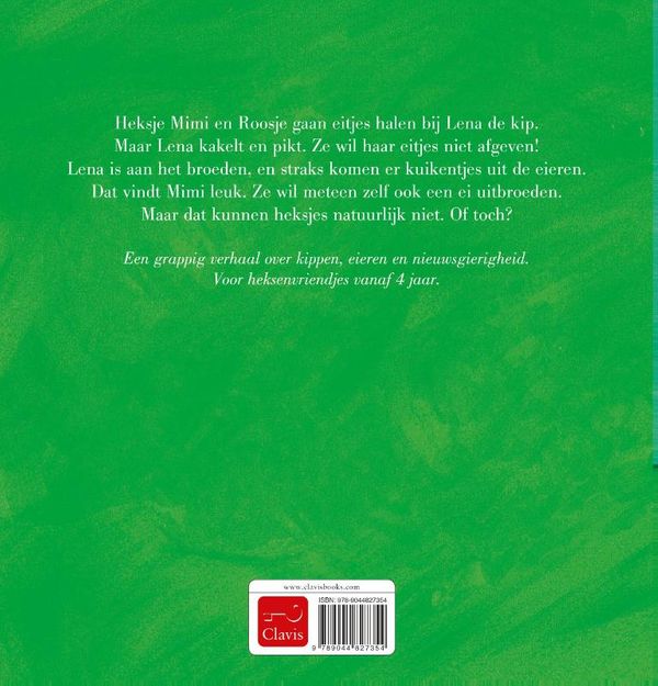 Heksje Mimi en Roosje gaan eitjes halen bij Lena de kip. Maar Lena kakelt en pikt. Ze wil haar eitjes niet afgeven! Lena is aan het broeden, en straks komen er kuikentjes uit de eieren. Dat vindt Mimi leuk. Ze wil meteen zelf ook een ei uitbroeden. Maar dat kunnen heksjes natuurlijk niet. Of toch?