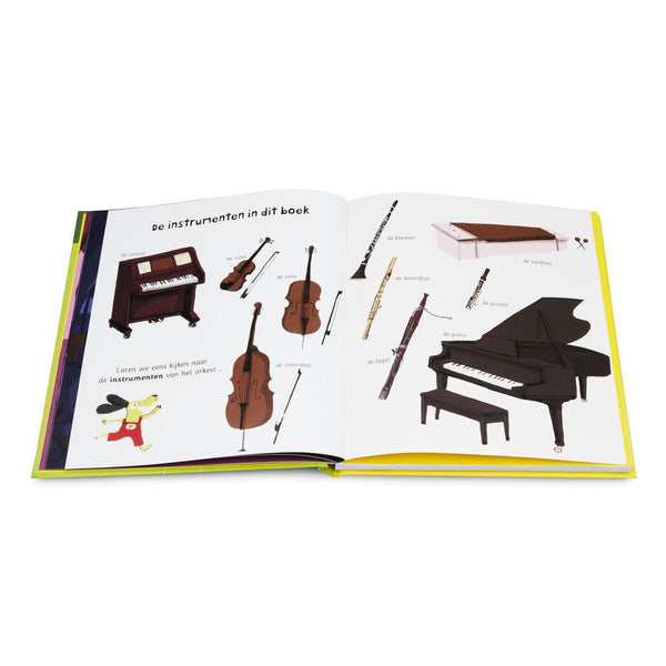 Druk telkens op de knop en ontdek de instrumenten van het orkest. Met echte instrumenten! Op een leuke manier kan je kleintje kennis maken met klassieke muziek. Op elke bladzijde zie je een nieuw instrument. Je kleintje mag drukken op de instrumenten en je hoort een stukje