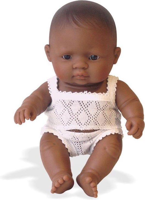Deze pop is volledig anatomisch correct en is gemaakt uit kunststof. De poppen van Miniland zijn gemaakt van ftalaat vrij zacht vinyl. (zonder weekmakers!) Aangezien dit een veilige pop is en het geen kwaad kan als ze in de mond gestopt worden, zijn ze al geschikt vanaf 10 maanden.