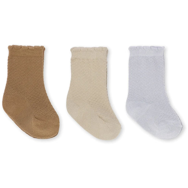 Maak de outfit van je kleintje compleet met deze Pointelle sokken set van Konges Slojd. Het setje heeft een opengewerkt pointelle design en bevat 3 verschillende kleuren.