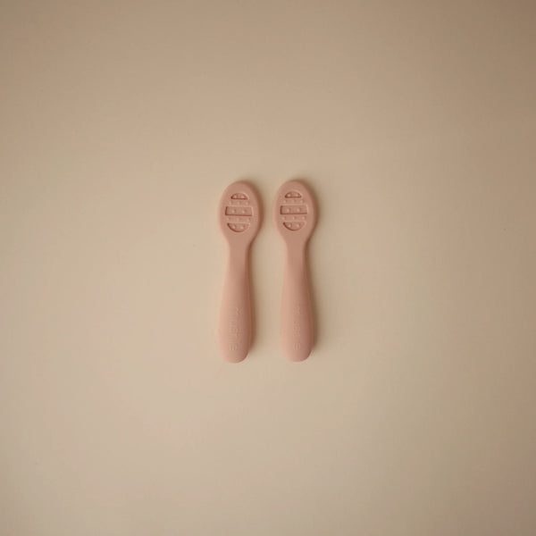 Dit mooie maar ook praktische bestek is van het merk Mushie. De Mushie lepels zijn gemaakt om tegen een stootje te kunnen en ligt fijn in de handjes vanwege de brede grepen. De lepels zijn gemaakt van food-grade siliconen en zijn daarnaast geschikt voor in de vaatwasser en magnetron.