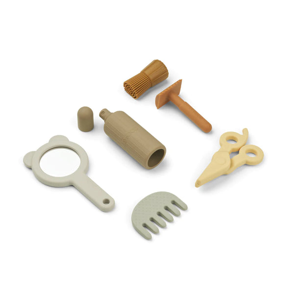 Siliconen Kapperset speelgoed. Fantasiespeelgoed stimuleert rollenspel en helpt kinderen sociale vaardigheden te ontwikkelen. De Freddie Barber Set is een uitstekende aanvulling op de verzameling speelgoed voor rollenspellen van elk kind en helpt bij het ontwikkelen van de fijne motoriek.