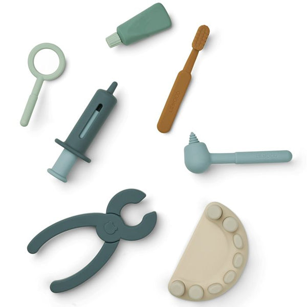 Siliconen Tandarts Speelset van Liewood. Het doen alsof speelgoed stimuleert rollenspel en helpt kinderen sociale vaardigheden te ontwikkelen. De Frank tandarts speelset is een uitstekende aanvulling op de speelgoedcollectie van elk kind en helpt de fijne motoriek te ontwikkelen.