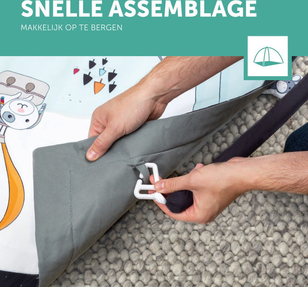 Het speelkleed is te gebruiken vanaf de geboorte. Is er een vlekje op het kleed gekomen? Geen probleem het kleed is wasbaar in de wasmachine. De speelbogen zijn afneembaar, zodat je ook kunt kiezen voor een los kleed. Door de afneembare speelbogen is het kleed tevens erg makkelijk op te bergen.