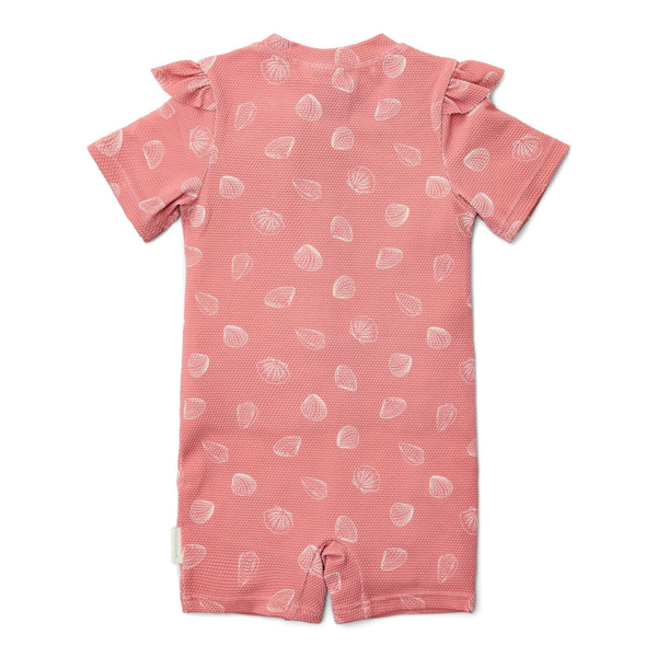 Klaar voor het strand met slechts één kledingstuk! Dit nauwsluitende zwempak in Lemonade Pink is ideaal voor een dag vol waterpret. Of je kleintje nu over de golven springt of schelpen verzamelt, dit zwempak zorgt voor comfort en bescherming tijdens alle zomerse avonturen. De witte schelpenprint op een roze achtergrond zorgt voor een speelse en dromerige uitstraling. De ruches op de schouders, geïnspireerd op de beweging van de golven, voegen een charmant detail toe. Dankzij de ritssluiting aan de voorkant is aan- en uitkleden zelfs met zand of natte handjes geen enkel probleem.