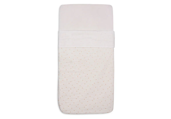 Upgrade de wieg of het ledikantje van je kleintje met ons laken van linnen-look slubstof. Verkrijgbaar in stijlvolle kleuren Ivory en Nougat, of kies voor een charmant harvest-printje. Creëer een knusse en trendy sfeer in de babykamer door hem te combineren met een gebreid dekentje van Jollein.